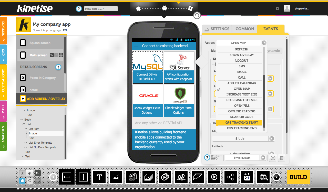 This service is good for those who want to customize their apps very much. You can add pages to your app to make it more complex. This service has 3 features which include app from scratch, the app from some themes and app from some templates. Customizing an app using kinetise is too easy as there is each and every option available for you to place an element in your app.